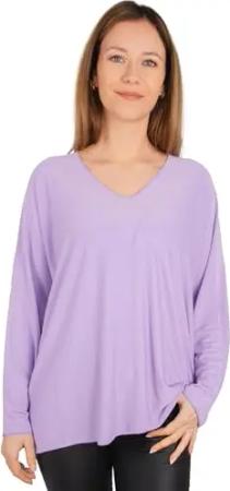 Elegantes Damen Langarm Shirt mit V-Ausschnitt | Leicht & Atmungsaktiv | Vielseitig kombinierbar | One Size - Maya (Viskose-Mischung, Flieder)