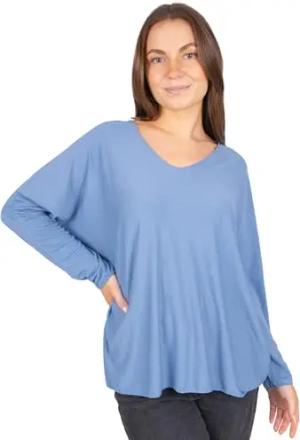 Elegantes Damen Langarm Shirt mit V-Ausschnitt | Leicht & Atmungsaktiv | Vielseitig kombinierbar | One Size - Maya (Viskose-Mischung, Hellblau)