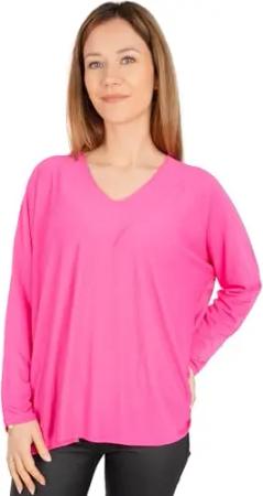 Elegantes Damen Langarm Shirt mit V-Ausschnitt | Leicht & Atmungsaktiv | Vielseitig kombinierbar | One Size - Maya (Viskose-Mischung, Pink)