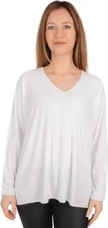Elegantes Damen Langarm Shirt mit V-Ausschnitt | Leicht & Atmungsaktiv | Vielseitig kombinierbar | One Size - Maya (Viskose-Mischung, Weiß)