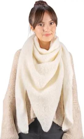 Kuschelig weicher Damen Schal in dreieck Form uni Farben - Britta (Creme, Einheitsgröße)