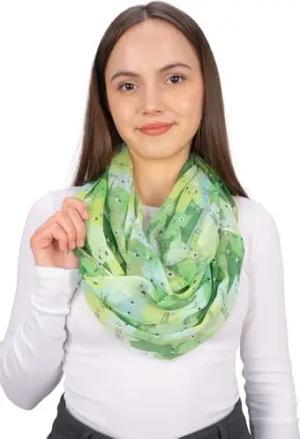 Weicher Damen Loop Schal mit Katzenmuster – Leicht, dünn aus Viskose-Seide – Accessoire – Molly (M220 Grün)