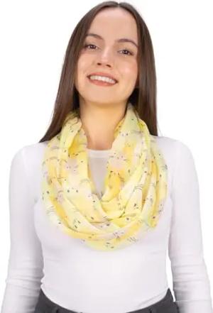 Weicher Damen Loop Schal mit Katzenmuster – Leicht, dünn aus Viskose-Seide – Accessoire – Molly (M224 Gelb)