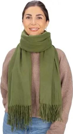 Weicher, leichter & kuscheliger Uni Schal aus Kaschmir Viskose Mix - Larissa (Khaki J3, Einheitsgröße)