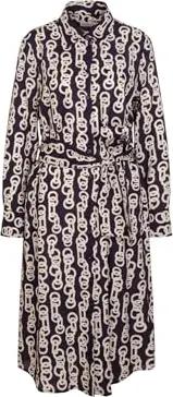 Damen Blusenkleid mit Bindegürtel - Kleid - Regular Fit - Maxi Kleid - Hemdblusenkragen - Langarm - 100% Viskose