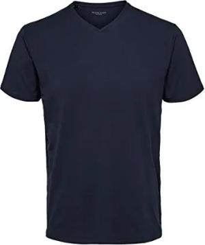 Herren Selected V-Ausschnitt T-Shirt | Einfarbiges Basic Kurzarm Shirt SLHNEWPIMA | Stretch Baumwolle, Farben:Navy, Größe:M