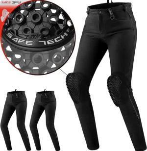 JESS Motorradjeans Damen - Atmungsaktive, Elastische, Regular Fit Biker Hose Damen mit Kevlar Schicht, Slim Fit, Knie und Hüft Protektoren (Schwarz, 26 LONG)