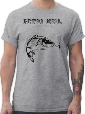 T-Shirt Herren - Angler Geschenke & Angeln Zubehör - Petri Heil - M - Grau meliert - Fishing Shirt angelshirts Angel Fisch Tshirt mit fischen fischmotiven angelbekleidung Fischerei Fische