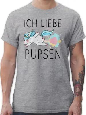 T-Shirt Herren - Einhörner - Ich Liebe pupsen Einhorn - Furtz Lustig Pups Geschenk Fürze - M - Grau meliert - Tshirt sprüche Shirt einhörnern furz für männer mit witzige Unicorns furzen Shirts