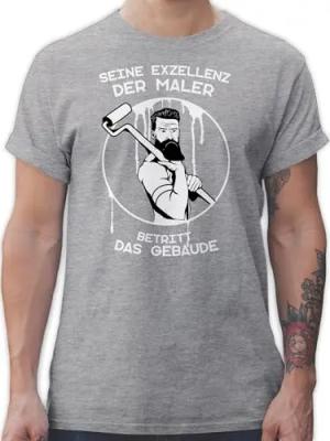 T-Shirt Herren - Handwerker Geschenke - Seine Exzellenz der Maler betritt das Gebäude - M - Grau meliert - lustige arbeitsshirts für arbeitstshirts Handwerk bestanden Tshirt arbeitsshirt Werkstatt
