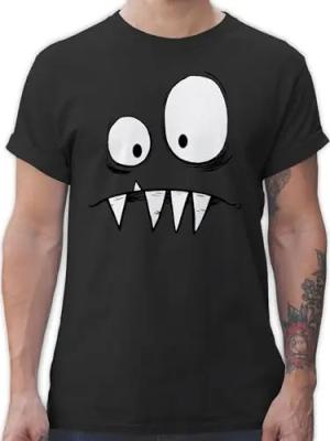T-Shirt Herren - Karneval & Fasching - Freches Monster große Augen gruselige Zähne I Fastnacht I Fasnacht I Fasnet - XL - Schwarz - Tshirt faschingsshirt Faschings Gesicht Shirts Faschings-t-Shirt