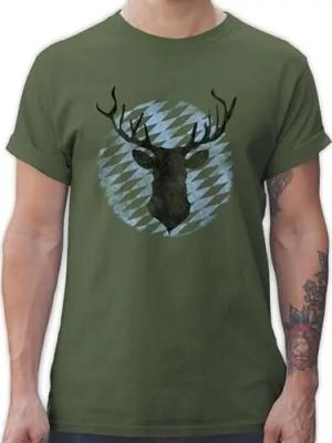 T-Shirt Herren - Kompatibel mit Oktoberfest - Hirsch Bayern - S - Army Grün - trachtenshirt bayrische Trachtenmode t Shirt Octoberfest Jagd Tshirt oktoberfestkleidung Oktoberfest-t-Shirt