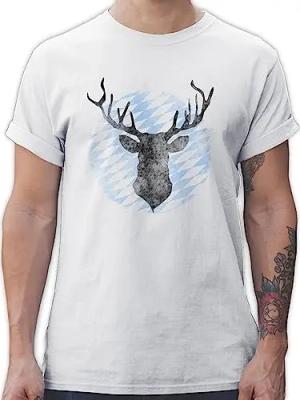 T-Shirt Herren - Kompatibel mit Oktoberfest - Hirsch Bayern - XL - Weiß - trachtenshirt bayrische Trachtenmode t Shirt Octoberfest Jagd Tshirt oktoberfestkleidung Oktoberfest-t-Shirt bayerischer