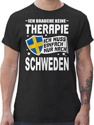 T-Shirt Herren - Länder Fahnen und Flaggen - Ich Brauche Keine Therapie Ich muss einfach nur nach Schweden - weiß - XXL - Schwarz - Country Souvenirs Tshirt Shirt t