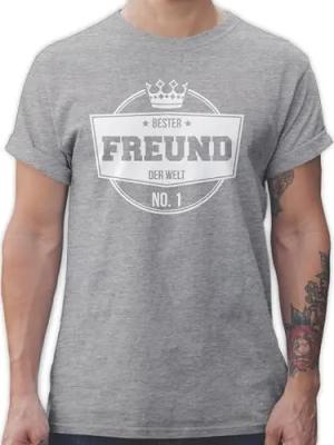 T-Shirt Herren - & Männer Geschenke - Bester Freund der Welt - M - Grau meliert - Buddy Shirt männertag BFF Tshirt Freunde t-Shirts Best Friends Shirts Beste Tshirts therren-Shirt tichert t für