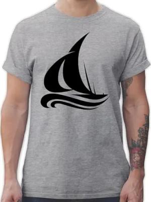 T-Shirt Herren - Schiffe - Segelboot Wellen - M - Grau meliert - Wassersport Welle Tshirt Schwimmer segeln schwimmmotiv segler Schwimmen Maritime schwimm Geschenk schwimmsport sprüche Spruch