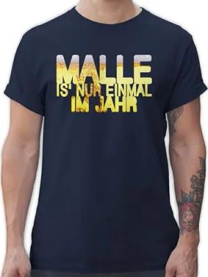 T-Shirt Herren - Sprüche Statement - Malle is' nur einmal im Jahr Bier - M - Navy Blau - Mallorca Shirts Party Tshirt mit Aufschrift betrunken Shirt Outfit schwarz Statements ist 1 mal Fun-t-Shirts