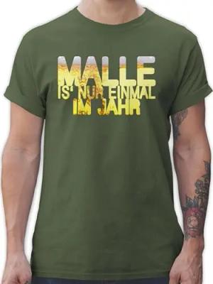 T-Shirt Herren - Sprüche Statement - Malle is' nur einmal im Jahr Bier - S - Army Grün - Mallorca Shirts Party Tshirt mit Aufschrift betrunken Shirt Outfit Statements ist 1 mal Fun-t-Shirts