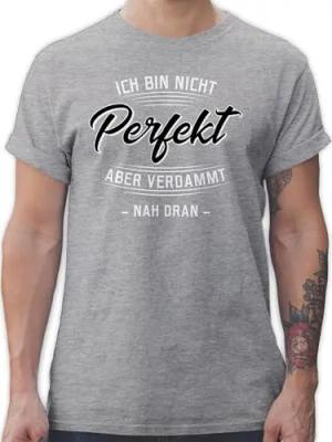 T-Shirt Herren - Sprüche Statement mit Spruch - Ich Bin Nicht perfekt Aber verdammt nah dran - S - Grau meliert - Tshirt spruchshirts sprueche Shirts Spruchshirt sprüchen Tshirts Tshirt/Spruch