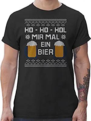 T-Shirt Herren - Weihnachten Geschenke Christmas Bekleidung - Ho Ho HOL Mir mal EIN Bier - XXL - Schwarz - Weihnachtspullover weihnachtsshirt weihnachtsmotiv hoho ma Tshirt weihnachtstshirts