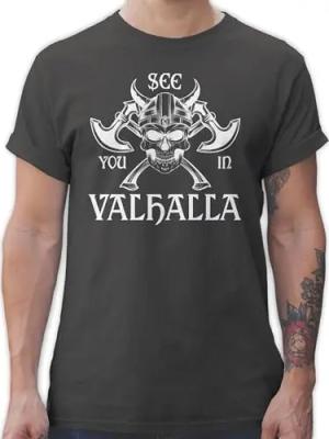 T-Shirt Herren - Wikinger & Walhalla - See You in Valhalla - XXL - Dunkelgrau - Viking Shirt Vikings Skull Tshirt mit Motiven vikinger Totenkopf Shirts Wikinger&Walhalla vallhallah