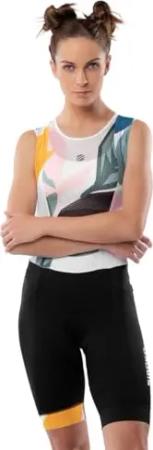 Fahrrad-Trägerhose für Damen BX Jungle - XXS - Schwarz/Weiß/Grün