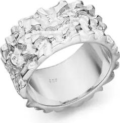 Silber Nuggetring 925 Sterling Silber – 12 mm breiter Designring mit organischer Oberfläche, galvanisch versiegelt, auch als Trachtenschmuck