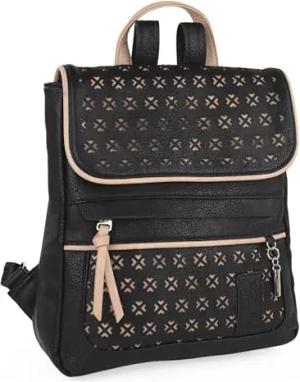 Cityrucksack Damen Klein Elegant Rucksack Damen Schwarz Alltag Modern, Kleiner Rucksack Damen für Büro Reise City Kollektion., Black-Taupe