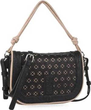 Damen Umhängetasche Mittelgroß & Klein, Crossbody Bag, Black-Taupe, 21x15x8 cm