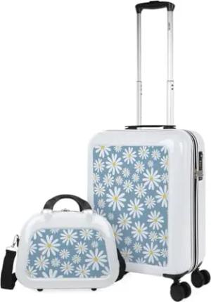 Koffer Mittelgroß - Polycarbonat hochwertiger und Stabiler reisekoffer mit Rollen - Koffer Mittelgroß 4 Rollen Leicht mit Kombinationsschloss. Koffer Weiß-Blaue Gänseblümchen