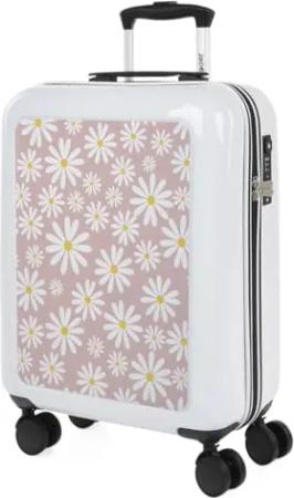 Koffer Mittelgroß - Polycarbonat hochwertiger und Stabiler reisekoffer mit Rollen - Koffer Mittelgroß 4 Rollen Leicht mit Kombinationsschloss. Koffer Weiß-Rosa Gänseblümchen