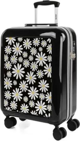 Trolley Handgepäck Cabin Trolley Koffer Reisekoffer Hartschalenkoffer mit Mit TSA-Schloss - Kabinengepäckgröße 55x40x20, Schwarz-Gänseblümchen