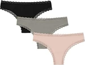 Brazilian Slip mit Spitze Damen aus Bio-Baumwolle (3er Pack) - Damenunterwäsche mit Perfekter Passform und angenehmem Tragegefühl - Unterwäsche Frauen Gr.XS, Farbe Weiß/Grau/Schwarz