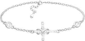 Damen Armband 925 Silber - mit Zirkonia Steinen - Kreuz Unendlichkeit Anhänger - B0387