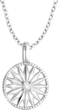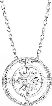 Damen Halskette 925 Silber - mit Zirkonia Steinen - Kompass Weltkarten Anhänger - N0397