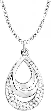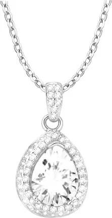 Damen Halskette 925 Silber - mit Zirkonia Steinen - Tropfen Anhänger - N0891