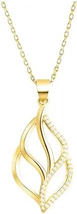 Damen Halskette 925 Silber - vergoldet/golden - mit Zirkonia Steinen - Blatt Anhänger - N0858