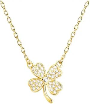 Damen Halskette 925 Silber - vergoldet/golden - mit Zirkonia Steinen - Blumen Anhänger - N0819
