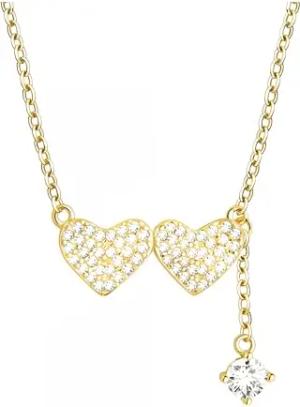 Damen Halskette 925 Silber - vergoldet/golden - mit Zirkonia Steinen - Doppeltes Herz Anhänger - N0821