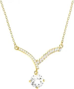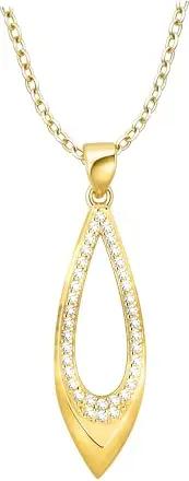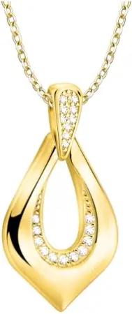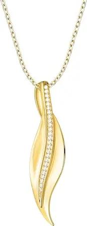 Damen Halskette 925 Silber - vergoldet/golden - mit Zirkonia Steinen - Gebogen Anhänger - N0866