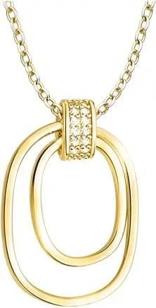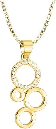 Damen Halskette 925 Silber - vergoldet/golden - mit Zirkonia Steinen - Kreise Anhänger - N0888