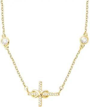 Damen Halskette 925 Silber - vergoldet/golden - mit Zirkonia Steinen - Kreuz Unendlichkeit Anhänger - N0829