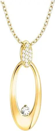 Damen Halskette 925 Silber - vergoldet/golden - mit Zirkonia Steinen - Ovaler Anhänger - N0575