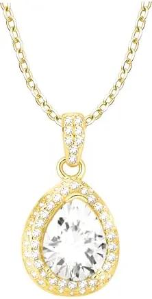 Damen Halskette 925 Silber - vergoldet/golden - mit Zirkonia Steinen - Zirkonia Anhänger - N0850