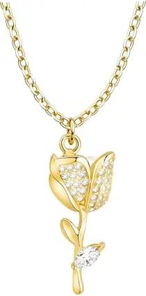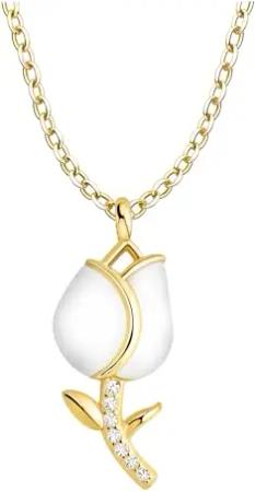 Damen Halskette 925 Silber - vergoldet/golden - mit Zirkonia Steinen - Tulpe Blume Anhänger - N0823