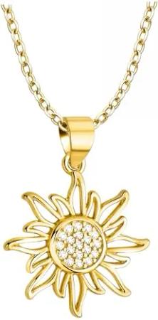 Damen Halskette 925 Silber - vergoldet/golden - Sonnen Anhänger - N0904