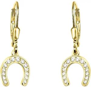 Damen Ohrringe 925 Silber - vergoldet/golden & mit Zirkonia Steinen - Hufeisen Ohrhänger - E2257