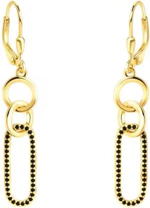 Damen Ohrringe 925 Silber - vergoldet/golden & mit Zirkonia Steinen - Ovaler Kreis Ohrhänger - E2960