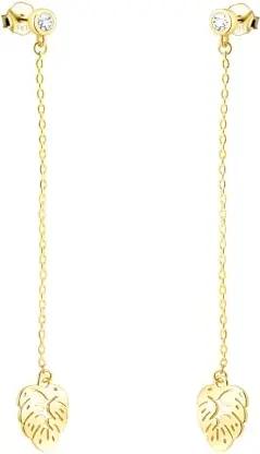 Damen Ohrringe 925 Silber - vergoldet/golden & mit Zirkonia Steinen - Zirkonia Blatt Ohrhänger - E3032