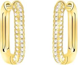 Damen Ohrringe 925 Silber - vergoldet/golden & mit Zirkonia Steinen - Zirkonia Creole - E2703